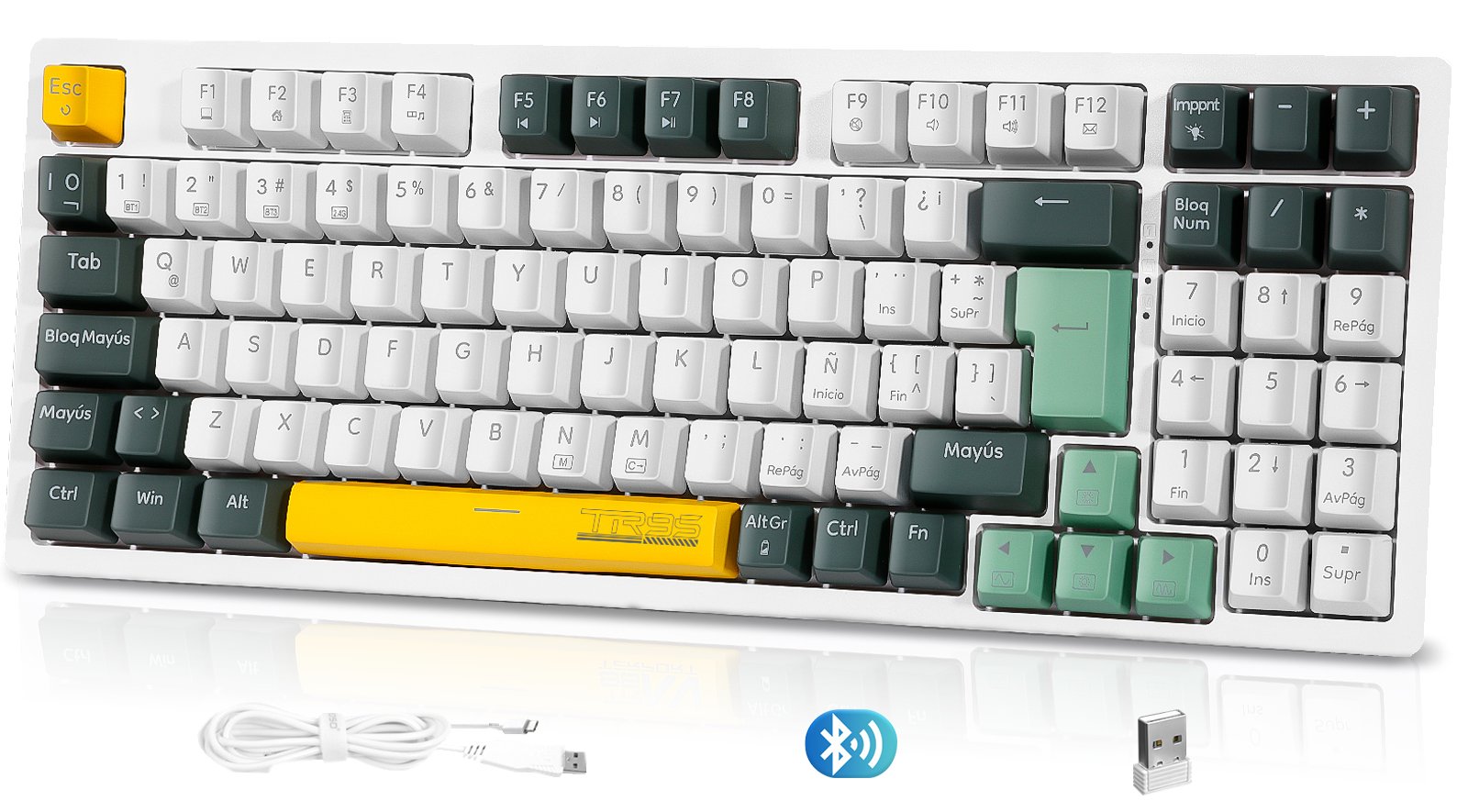 Diseño de teclado pc en idioma español con la tecla Ñ, que es conveniente para usuarios que usan caracteres españoles. Las teclas moldeadas por inyección dual brindan una retroiluminación clara y uniforme y curvas ergonómicas para garantizar que las letras no se rayen.