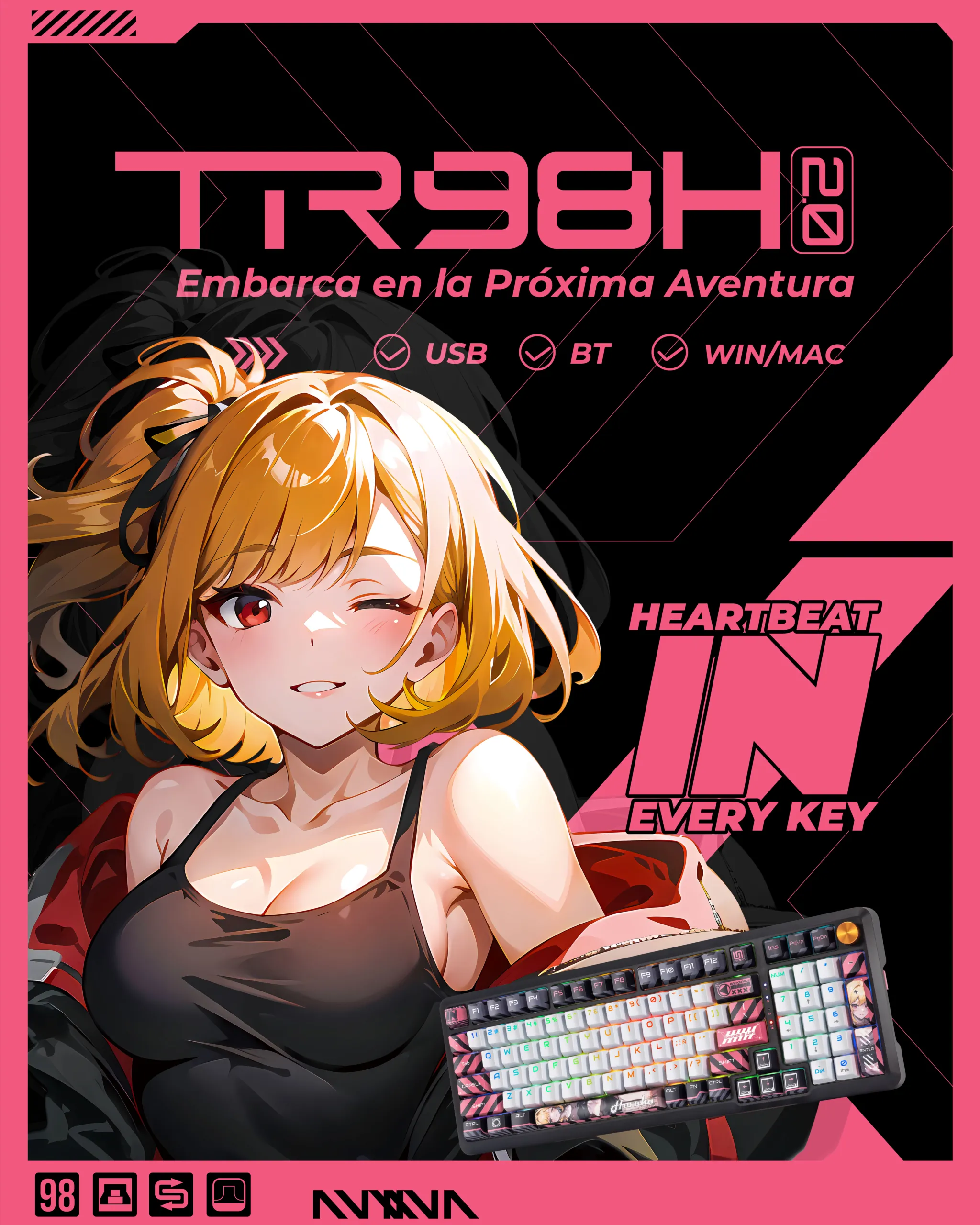El teclado TR98H ofrece una disposición compacta de 98 teclas para disponer de todas las teclas esenciales sin sacrificar espacio en el escritorio. Gracias a la conectividad trimodal, puede alternar sin problemas entre los modos Bluetooth, inalámbrico y con cable para disfrutar de un flujo de trabajo fluido y sin interrupciones, ya sea en casa, en la oficina o de viaje.