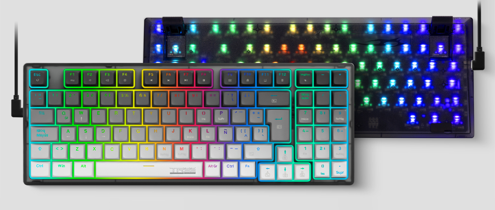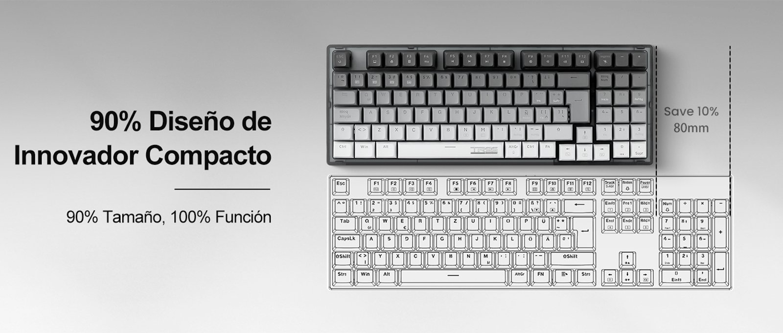 Tamaño más compacto y popular de 90%, conservan la zona de flechas y números, lo que lo vuelve más conveniente tanto en juegos como en escritura diaria. Además, con las 95 teclas antighosting en español latinoamericano, el teclado será más útil y eficiente para nuestros usuarios.