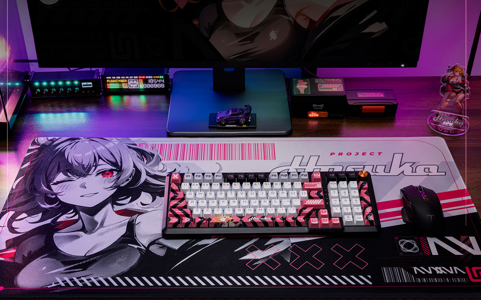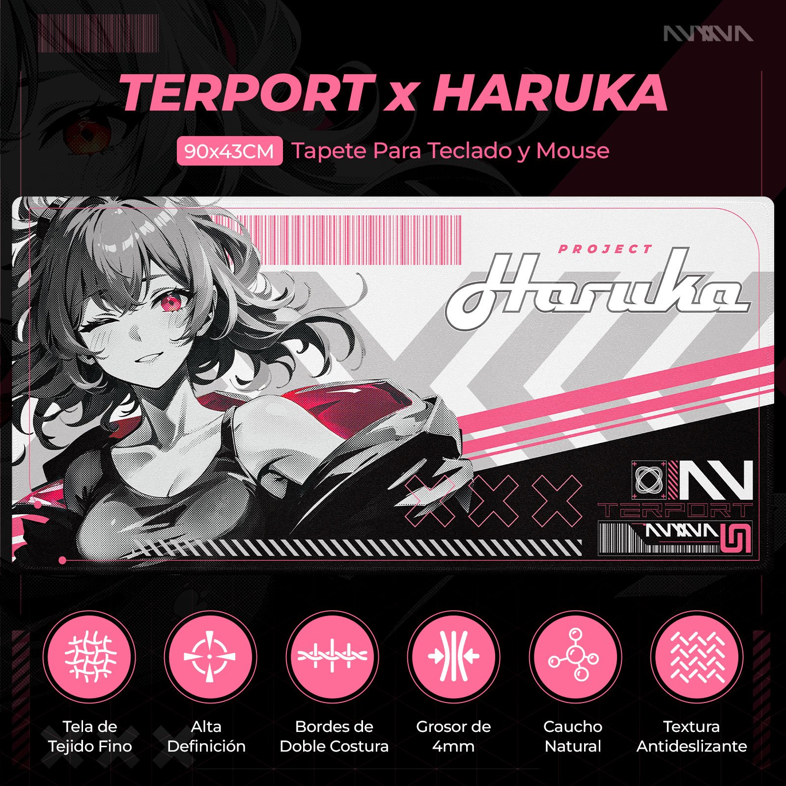TERPORT X HARUKA Mouse Pad Grande Anime 90x43cm Antideslizante HAK 1.0, Tapete Escritorio Profesional Para Teclado y Mouse Con Figura Anime Haruka, Alfombrilla Grande PC Con Doble Costura – Color Plateado y Rosa