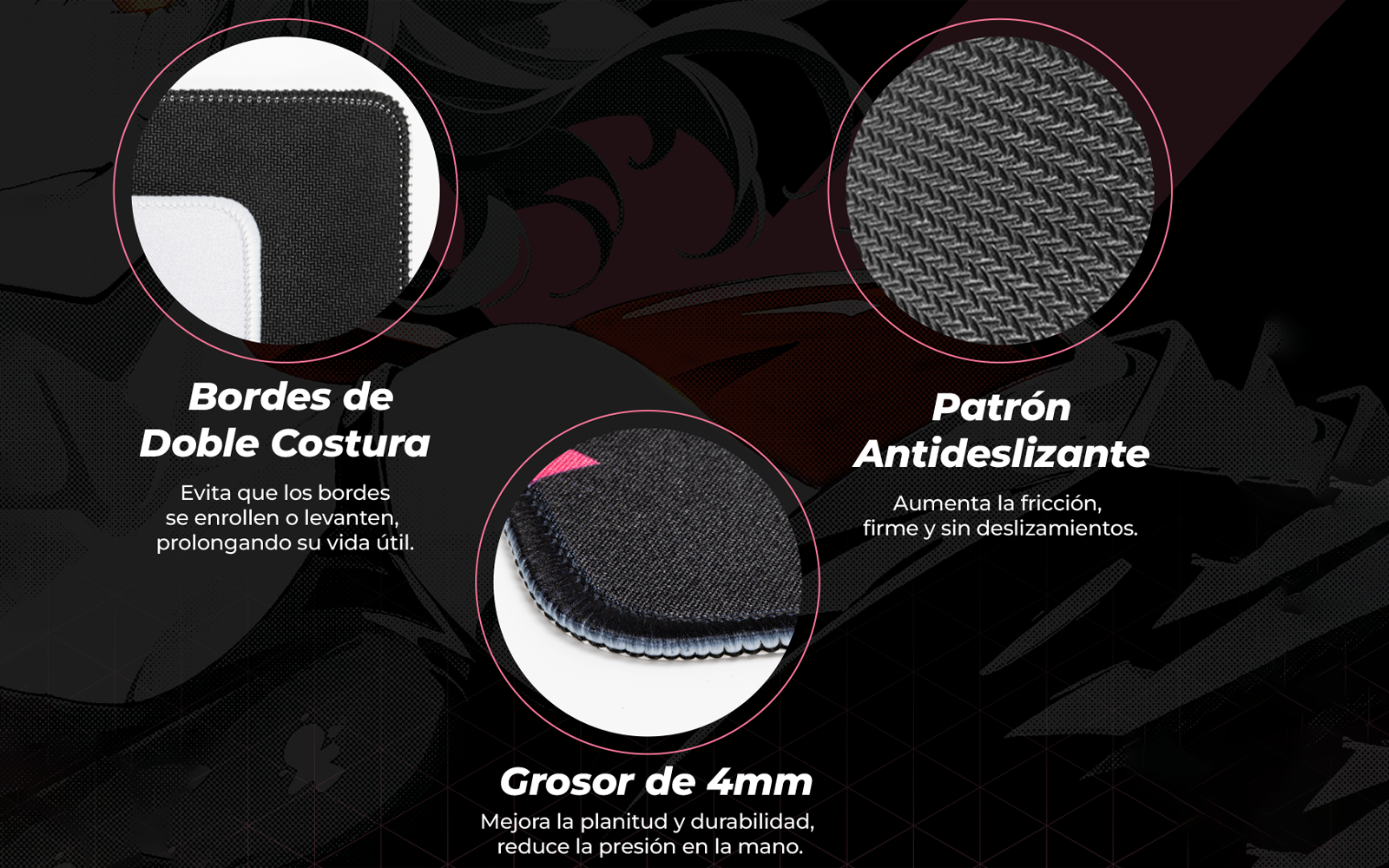 Con doble costura en los bordes y un grosor de 4mm, este mouse pad gamer grande está diseñado para durar. El refuerzo amortigua el impacto del teclado, mientras que la base de goma antideslizante garantiza un agarre firme, evitando movimientos indeseados. Perfecto para un uso prolongado y estable en cualquier entorno.