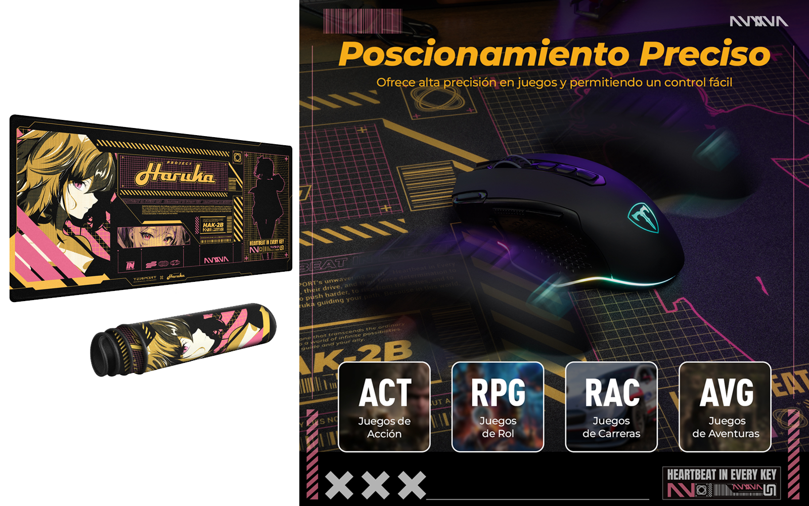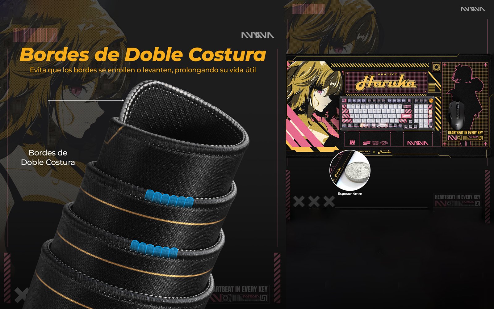 Con un tamaño de 90x43cm, este mouse pad grande ofrece un amplio espacio para tu teclado y ratón, sin ocultar el impresionante diseño del personaje anime Haruka. Ideal para estaciones de juego o mesas de oficina, optimizando la inmersión en juegos y tu productividad.