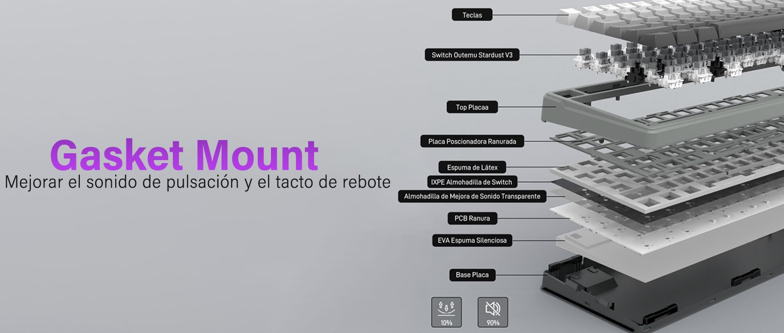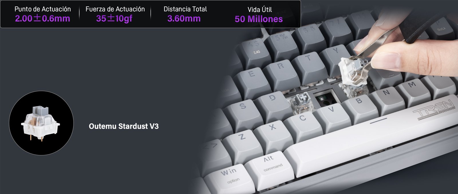 Descubre el TERPORT TR9N, un teclado mecánico inalámbrico con 99 teclas, luces RGB personalizables y switches Outemu Stardust V3 lineales y ligeros. Compatible con Win y Mac, ofrece conexión Bluetooth, 2.4G y cableada, además de función hotswap y antighosting.