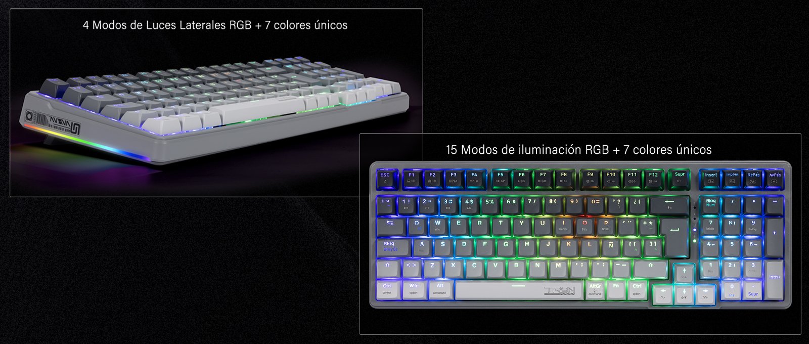 Este teclado es resistente a salpicaduras y ofrece una experiencia ergonómica y eficiente para gamers y profesionales que buscan rendimiento y personalización en su equipo.