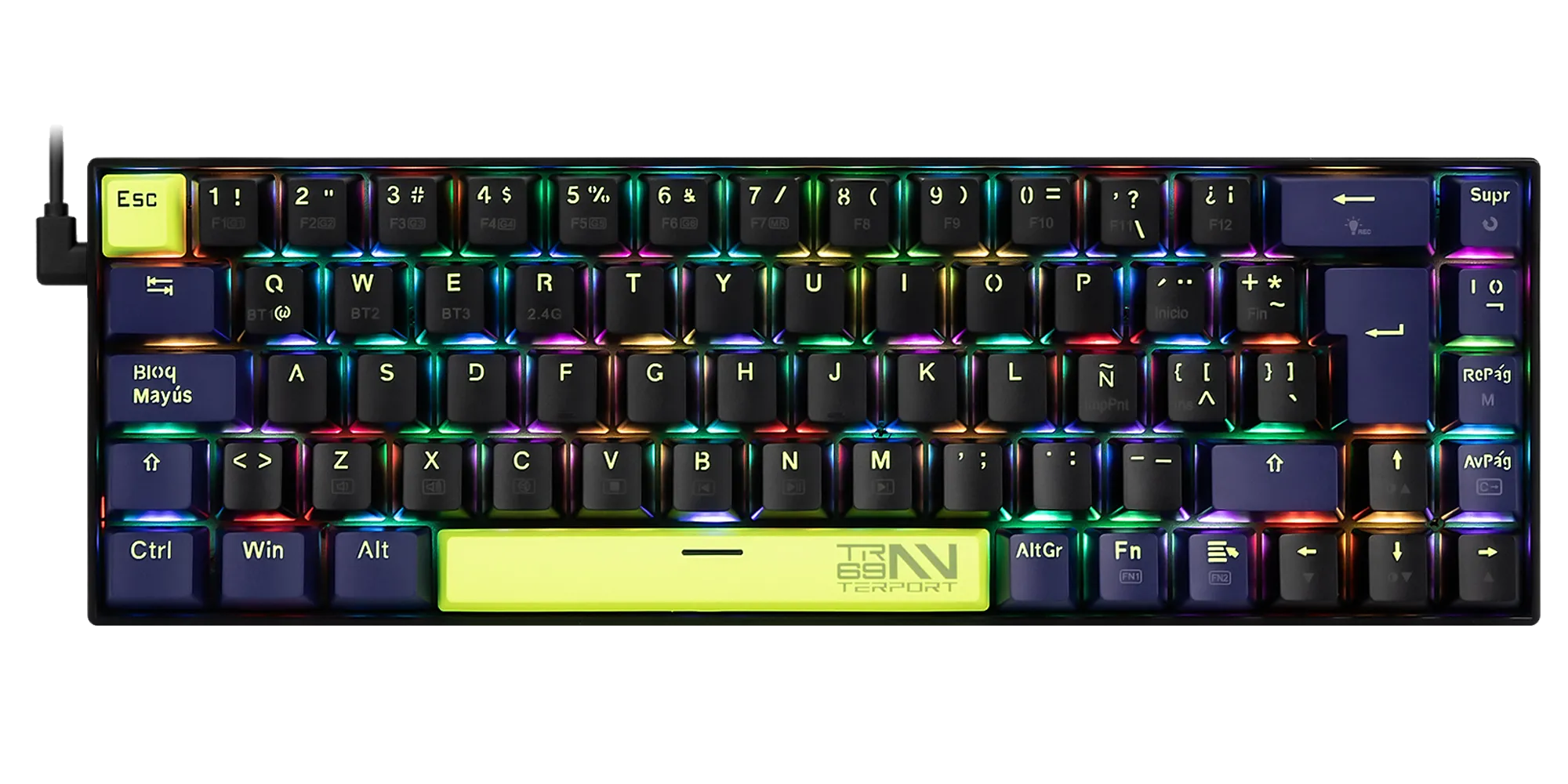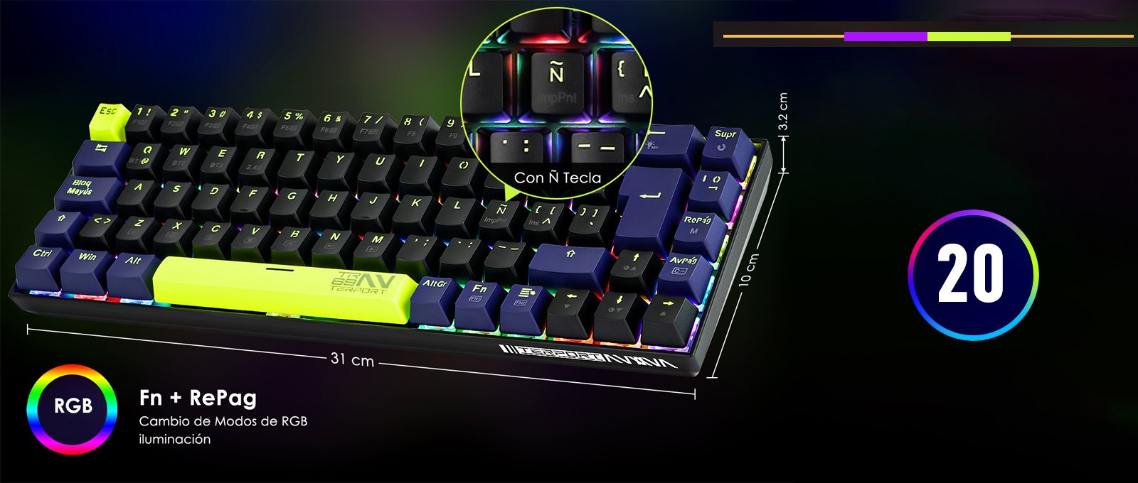 Con un diseño de 69 teclas, este teclado gamer ahorra espacio en el escritorio sin sacrificar funcionalidad. Incluye 69 keycaps intercambiables extras con colores inversos, permitiendo personalizar el estilo a tu gusto. Ideal para quienes buscan un dispositivo compacto y estético que se adapte a sus preferencias.