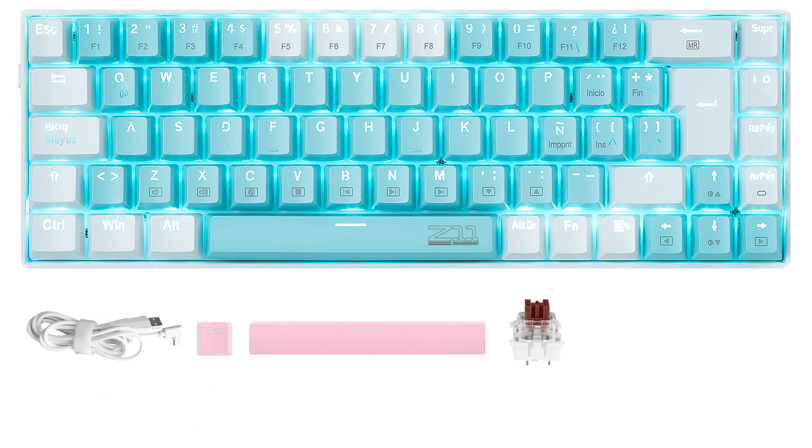 Se trata de un teclado español latino con un tamaño 65% muy compacto con flechas, lo cual te permite tener más espacio de escritorio. Además, con el idioma español latino, este teclado te satisfacerá las necesidades de usar carácteres españoles, que te ofrece una experiencia más conveniente y cómoda.