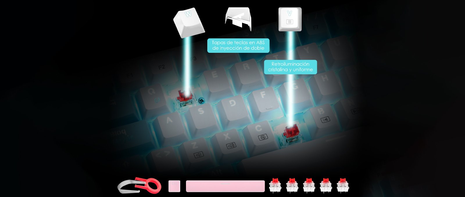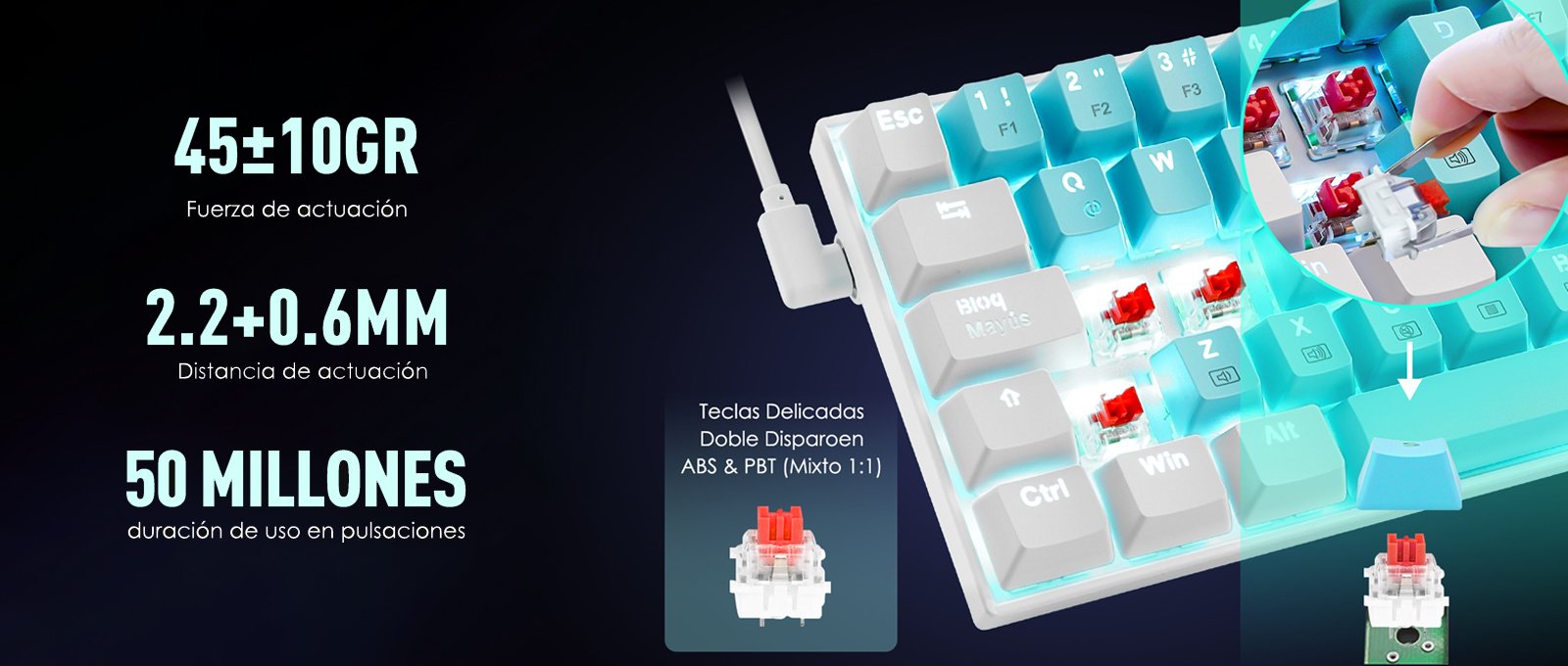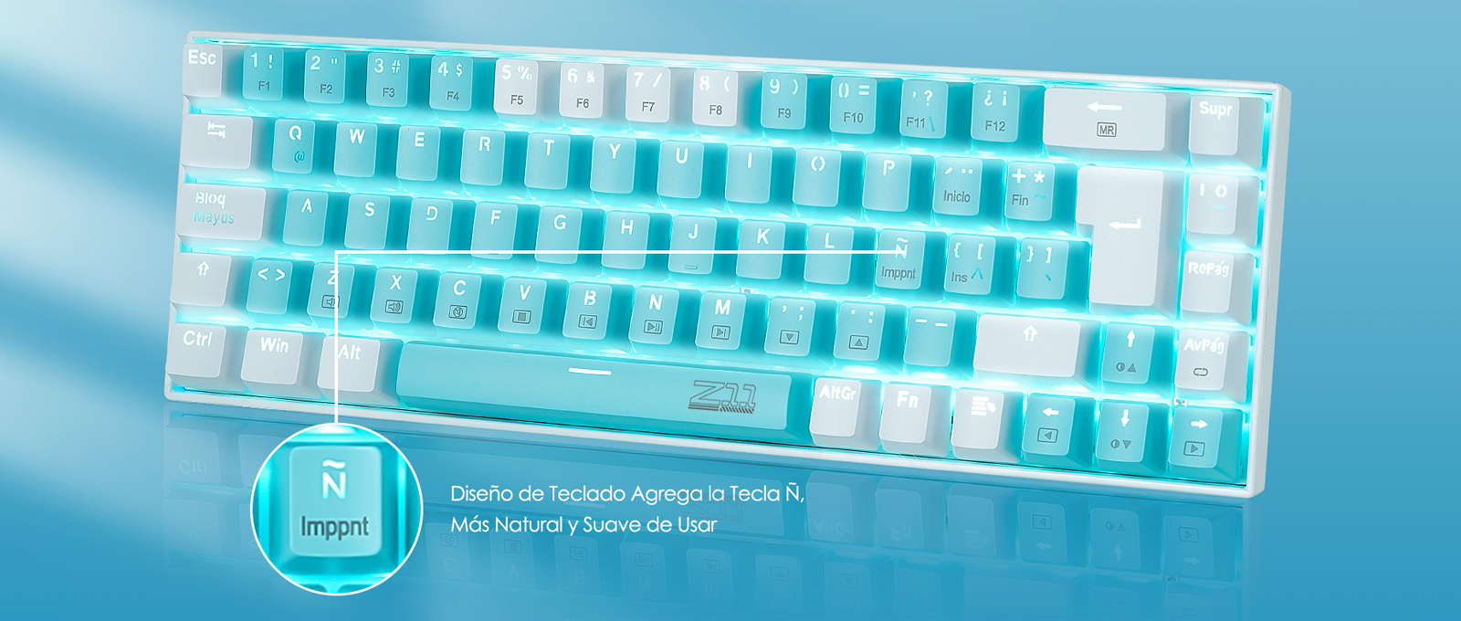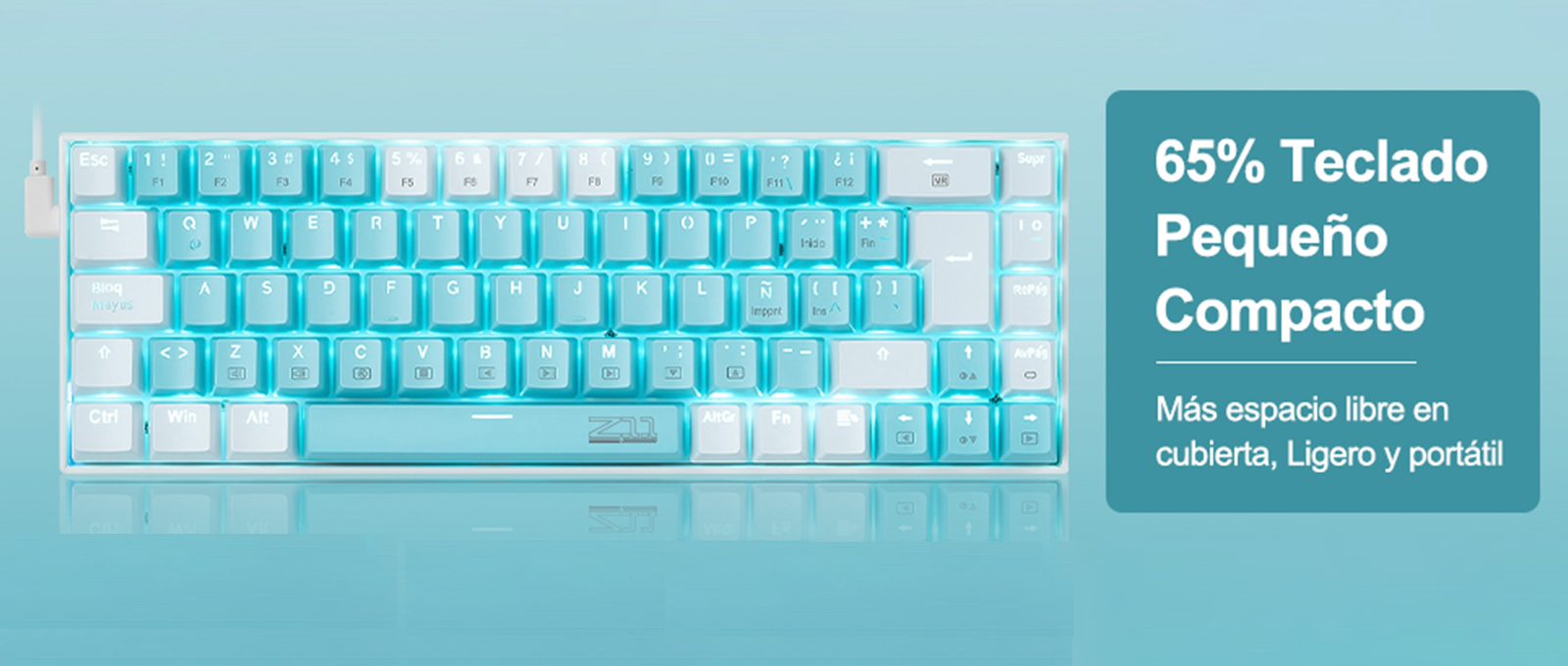 Se trata de un keyboard gamer de un tamaño 65% muy compacto. Debido a su diseño eficiente, te permite tener más espacio para otros dispositivos o accesorios. Y con el idioma español latino, este teclado te satisfacerá las necesidades de usar carácteres españoles, que te ofrece una experiencia más conveniente y cómoda.