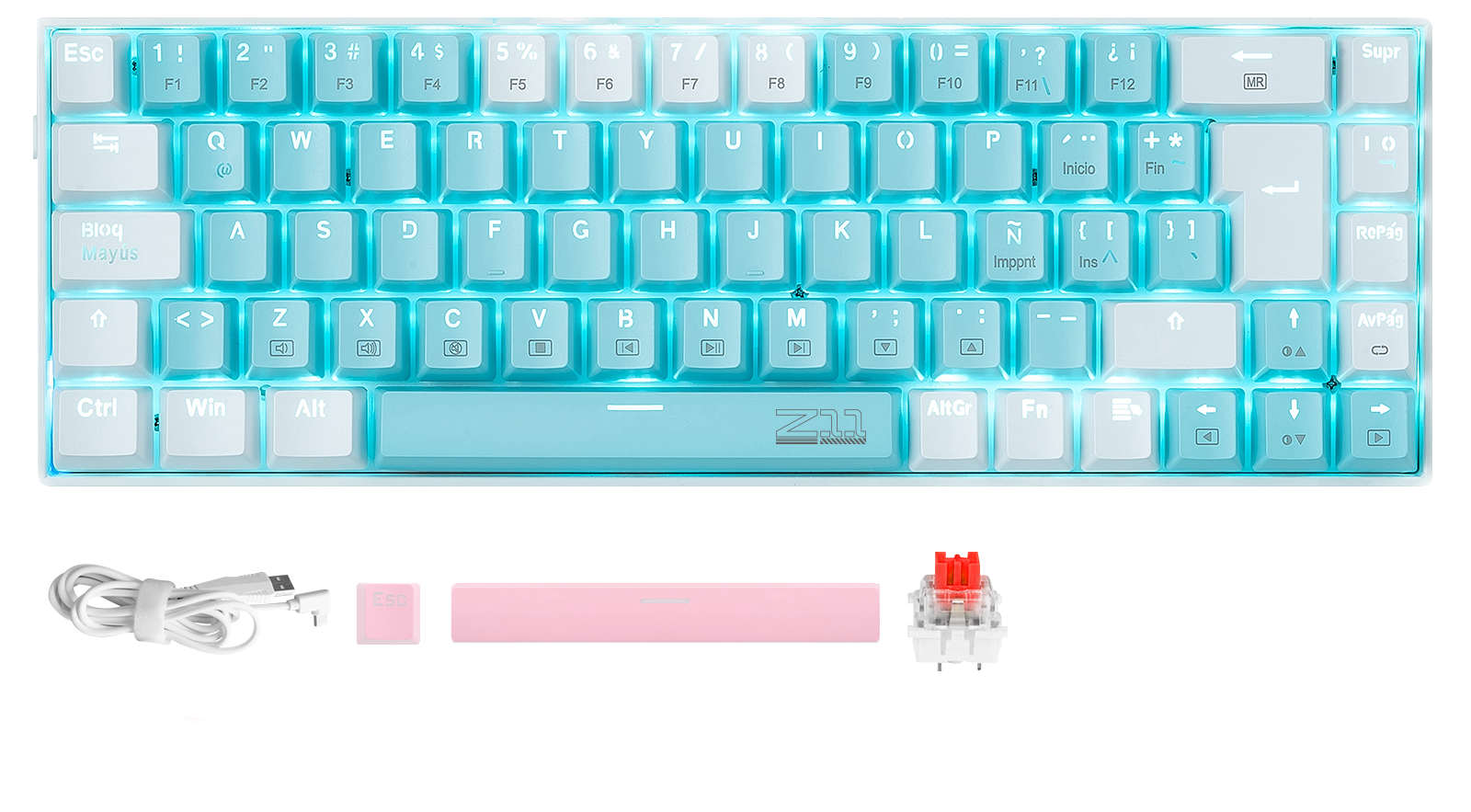 TERPORT 65% Teclado Gamer Español Z11 Luz Azul, Cable Removible, Switch Outemu Red Hotswap, Keyboard Gamer Español de 69 Teclas Anti-hosting
