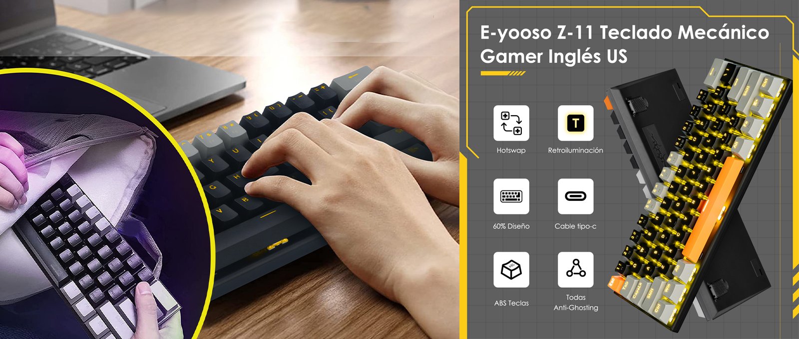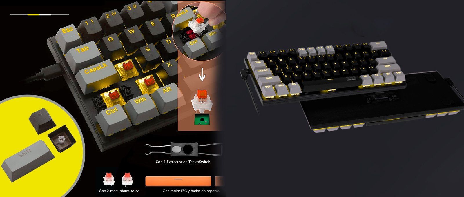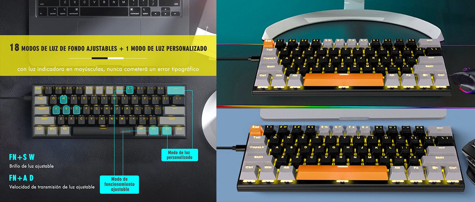 Añade estilo a tu setup con el teclado mecánico gamer que ofrece 18 efectos de retroiluminación amarilla. No solo mejora la estética de tu espacio, sino que también proporciona una excelente visibilidad en condiciones de poca luz. Perfecto para gamers y entusiastas de la tecnología.