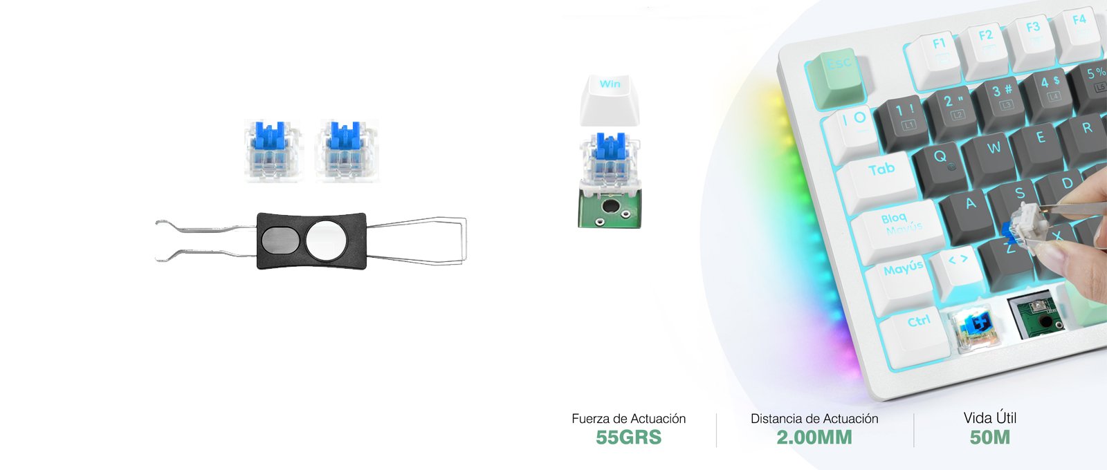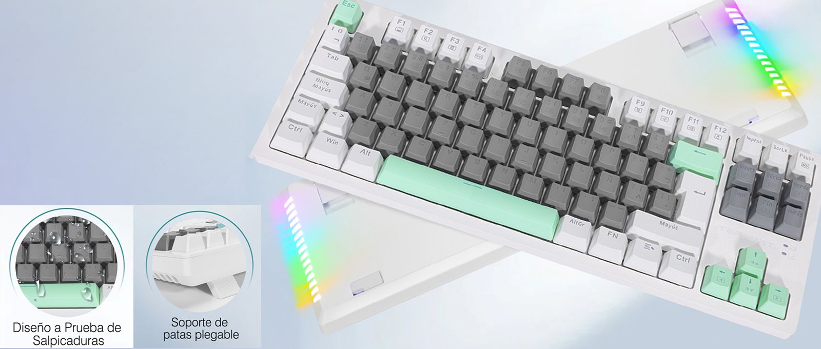 Este teclado mecánico aplica la distribución clásica TKL al 80%, compacto y ahorra espacio para escritorio. Diseño en español con la tecla Ñ, el teclado es más conveniente para escritura español. Además, las 88 teclas están libres de conflictos por sistema full-antighosting, lo que garantiza una experiencia de juego o escritura fluida.